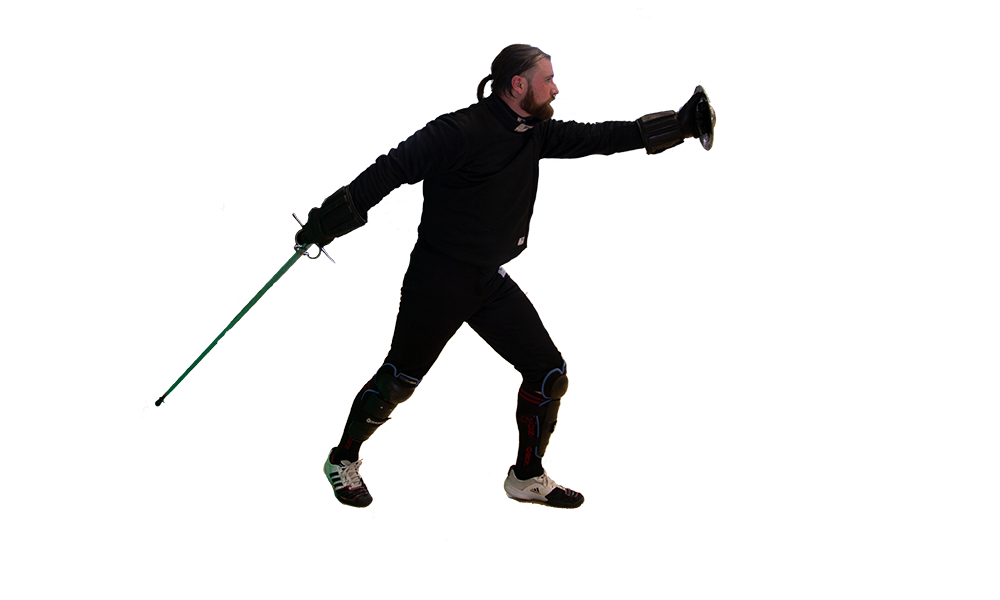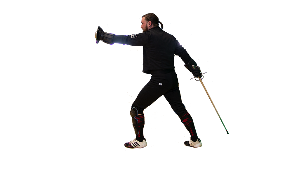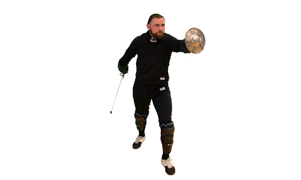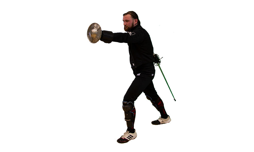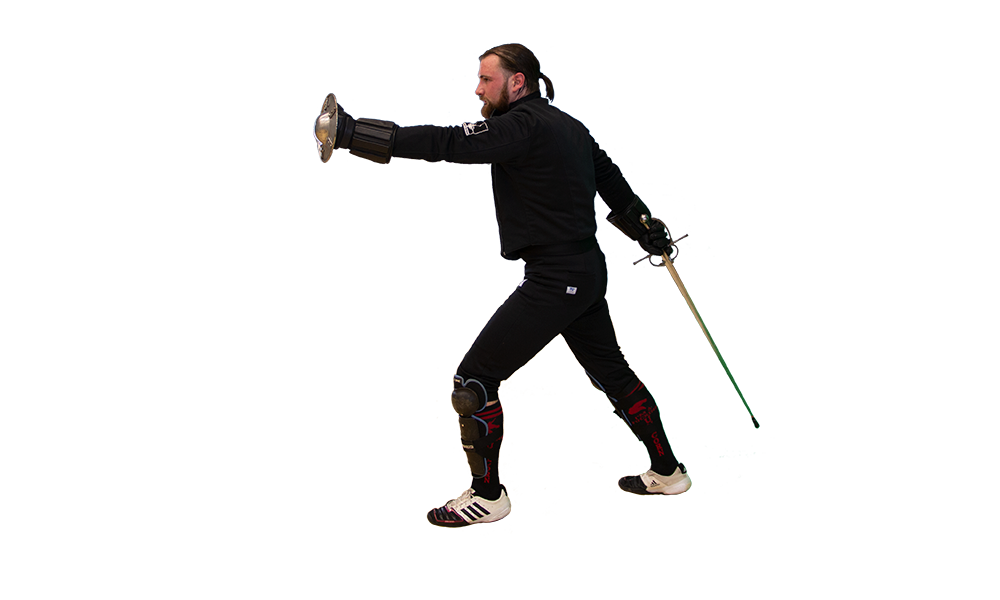 Coda Lunga e Distesa Instructions Reading school interpretation Feet: Off-side foot forward, narrow stance Buckler: Extended forward at shoulder height Sword: Sword arm extended backwards with your palm facing to your off-side so that the blade points behind you