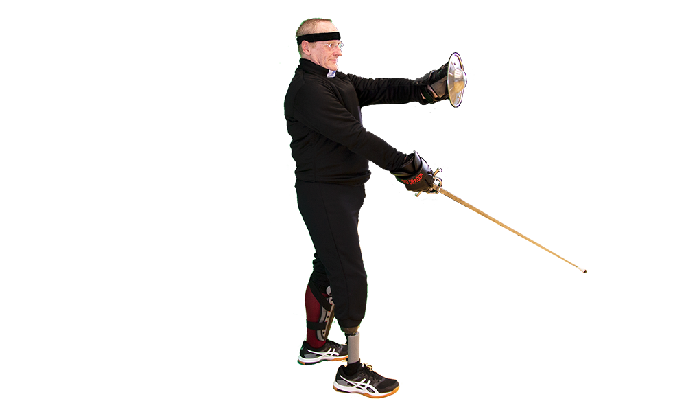 - Feet: Wide stance (feet about your shoulder-width apart) with the sword-side foot forward