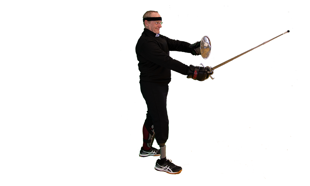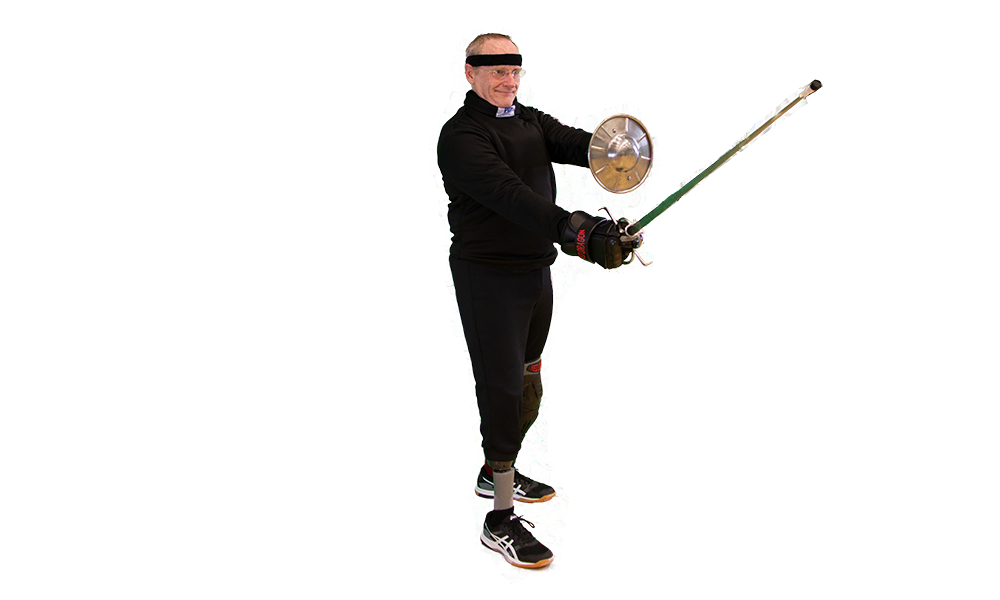 - Sword: Sword hand should be to the off-side of your forward leg with the tip of the blade pointed at your opponent's face. The true-edge should be angled towards your off-side at about 45 degrees