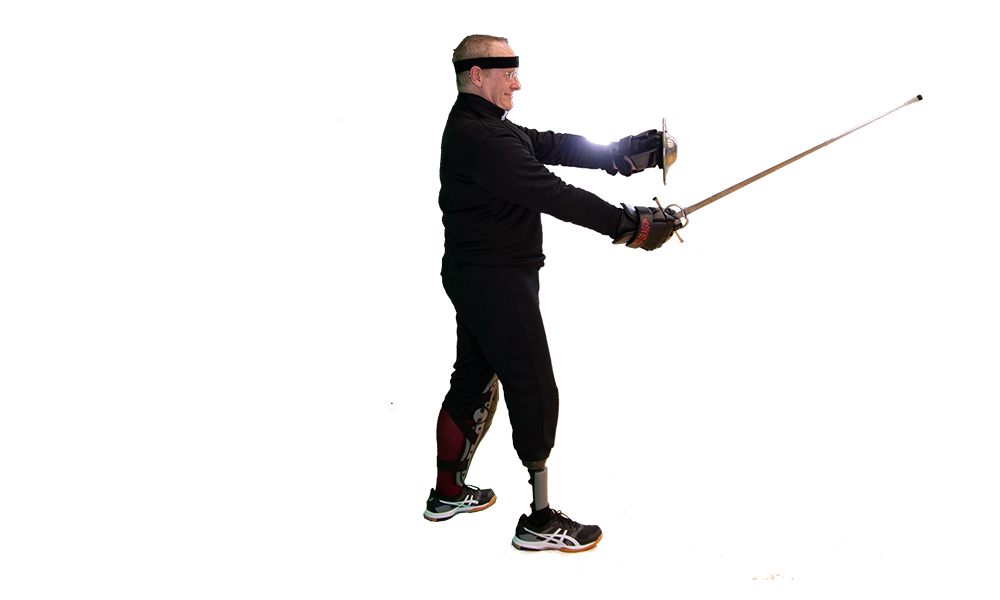 - Feet: Wide stance (feet about your shoulder-width apart) with the sword-side foot forward