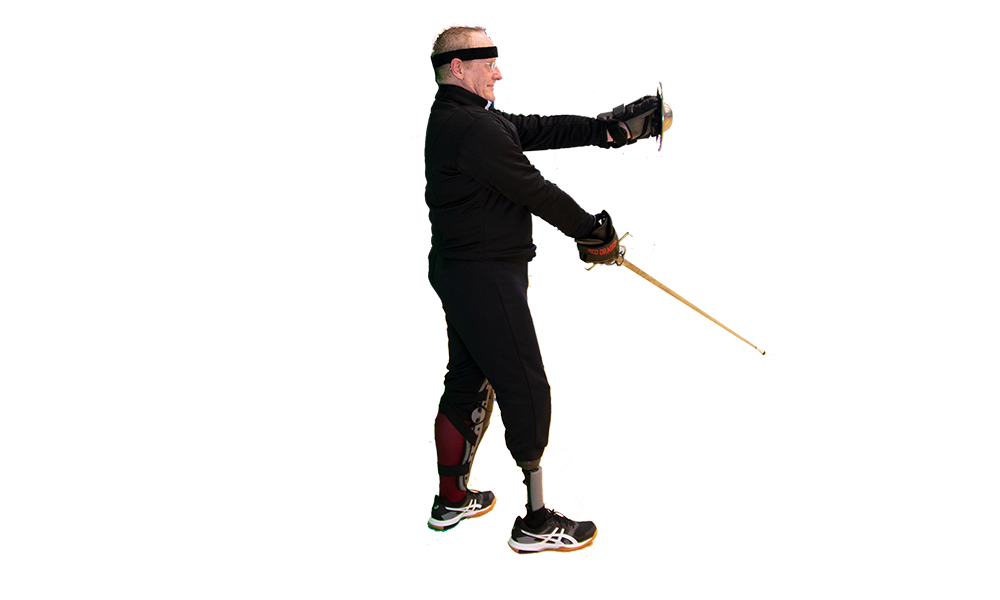 - Feet: Wide stance (feet about your shoulder-width apart) with the sword-side foot forward
